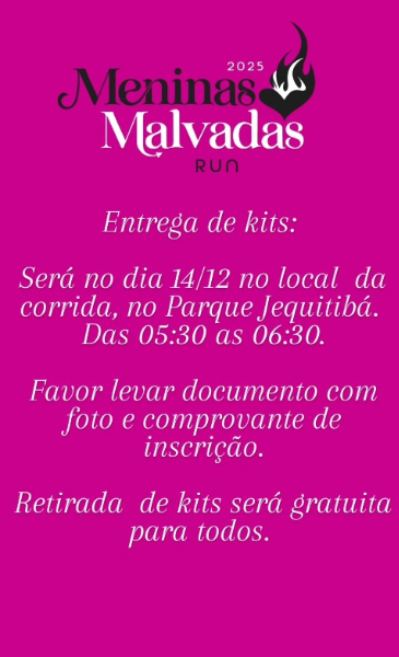 🎅 Ambientação natalina, brindes personalizados, clima de celebração e muito rosa! Look temático incentivado com gorros, camisetas e acessórios especiais.♻️ Incentivo ao descarte consciente de resíduos no local. Copos reutilizáveis incluídos nos kits premium. Utilização de materiais recicláveis sempre que possível.📩 Contato via e-mail: tbfsports@gmail.com | contato@tbfsports.com.br. Redes sociais: Instagram @tbfsports. Comunicação contínua com os inscritos por e-mail e redes sociais.
