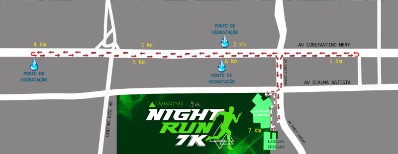 A largada e a chegada da prova serão na Av. Darcy Vargas, No Estacionamento 1 do Shopping, Bairro Chapada, Manaus/AM, sob quaisquer condições climáticas, nos seguintes horários:
