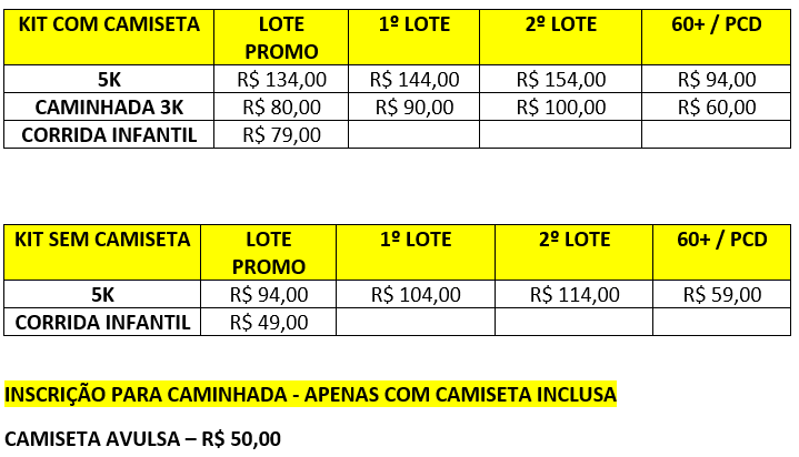 *Feminino - (5km) - 20'30" e (10km) 40'50"