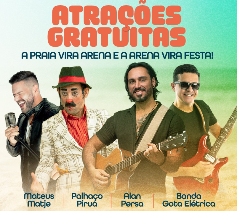 Além das competições esportivas, o Arena Verão contará com uma programação cultural especial, trazendo ainda mais energia para a praia: