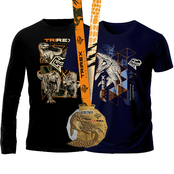 KIT JURASSICO: MEDALHA, NUMERAL + CHIP, ISOTÔNICO E FRUTAS PÓS PROVA, INFRAESTRUTURA CHELSO SPORTS, CAMISETA, CAMISETA MANGA LONGA, TOUCA.