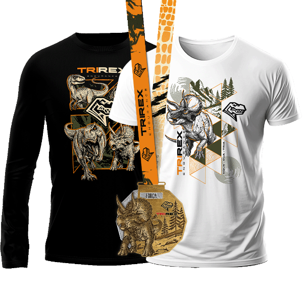 KIT JURASSICO: MEDALHA, NUMERAL + CHIP, ISOTÔNICO E FRUTAS PÓS PROVA, INFRAESTRUTURA CHELSO SPORTS, CAMISETA, CAMISETA MANGA LONGA.